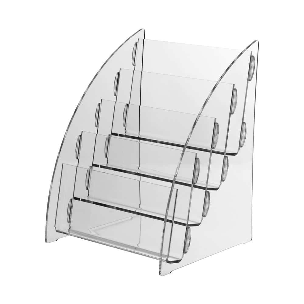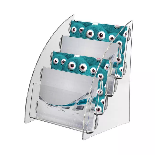 Denne bordmodellen har plass til 4 ulike brosjyrer i format liggende A5.