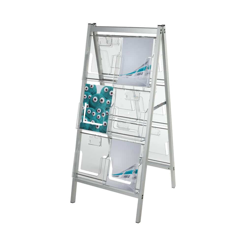 Denne A-bukken er et slitesterkt og fleksibelt brosjyrestativ som gir din informasjon en profesjonell og iøynefallende presentasjon. La oss hjelpe deg med å tilpasse det etter dine spesifikke behov!