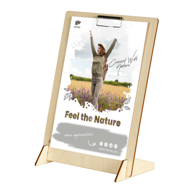 En stilren og miljøvennlig plakatholder som er laget av kryssfiner i bjerk. Leveres flatpakket, som betyr effektiv transport. Delene kan enkelt settes i hverandre uten bruk av verkrøy eller skruer.