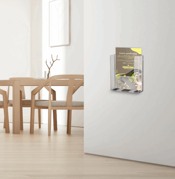 - Enkel montering: De to hullene gjør det enkelt å feste holderen på vegg eller et brosjyrestativ.