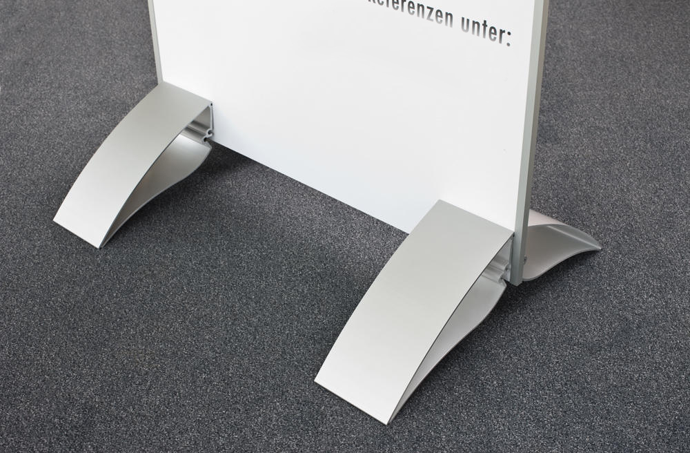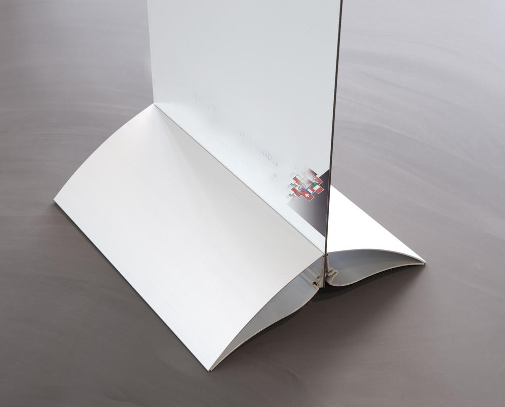 Denne plakatfotenn i sølvanodisert aluminium kombinerer funksjonalitet med et stilrent design. Med sklisikker gummi gir den stabilitet på alle underlag. Perfekt for paneler med en tykkelse på 4-18 mm, og gjør montering enkelt og sikkert. Juster den stjerneformede håndtaket under for å låse panelet fast. Ideell for profesjonelle utstillinger og mange andre bruksområder.