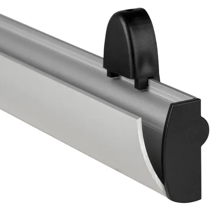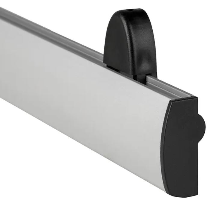 Takket være det brukervennlige klemmesystemet, som også benyttes i bannerdisplayet Easy, bytter du raskt ut budskapet uten verktøy. Banneret legges rett inn i klemmelistene, som lukkes og holder det trygt på plass. En stor fordel er at systemet ikke avhenger av bannerenes lengde – du kan bruke samme løsning til både korte og lange bannere.
