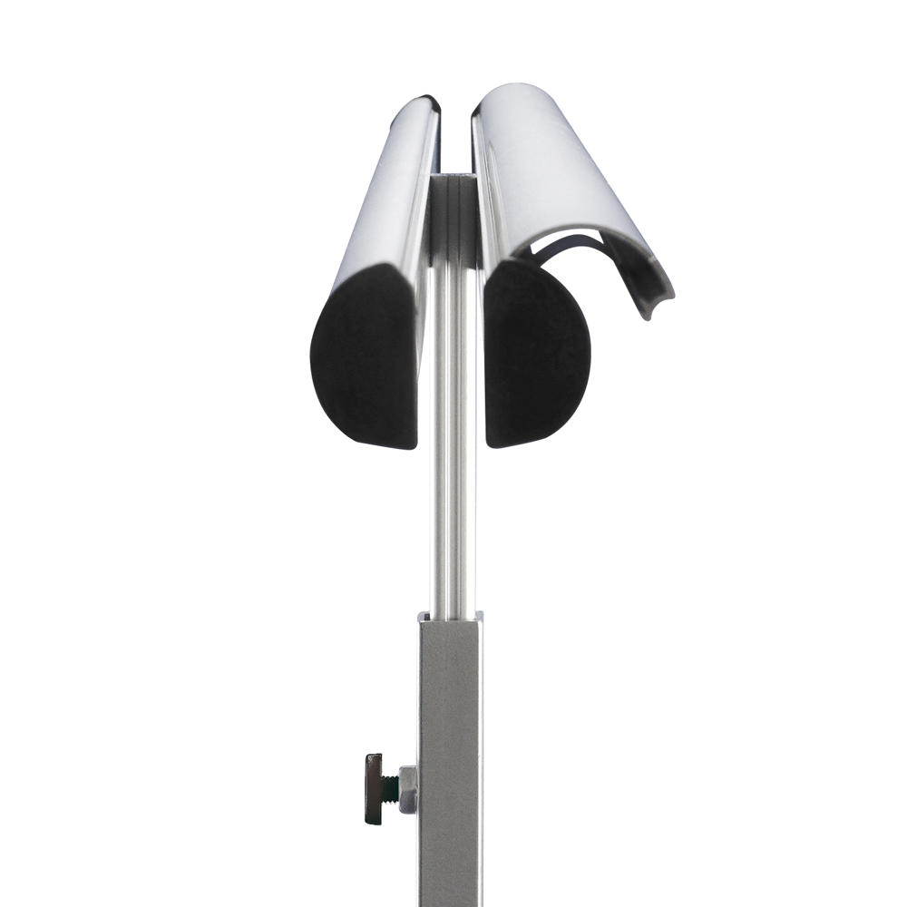 Uttrekkbar stang i sølvanodisert aluminium.