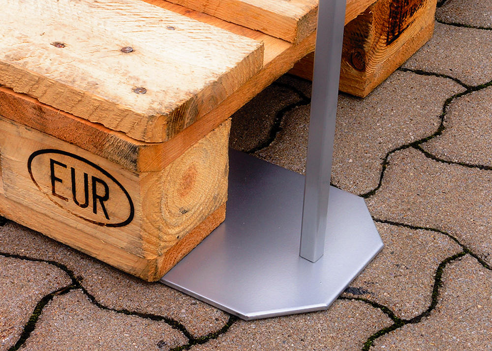 Fot i pulverlakkert stål, 300 x 300 mm, farge sølv (RAL 9006).