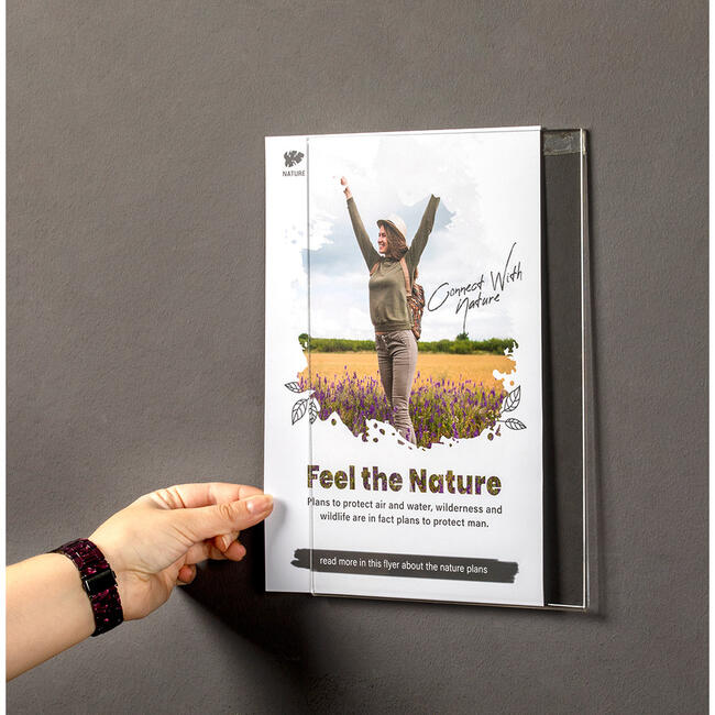 U-lomme i 2mm klar akryl er en av de mest vanlige plakatholderne i handelen. Den er rimelig, og enkel å bruke, samtidig som den er stilren og lekker.