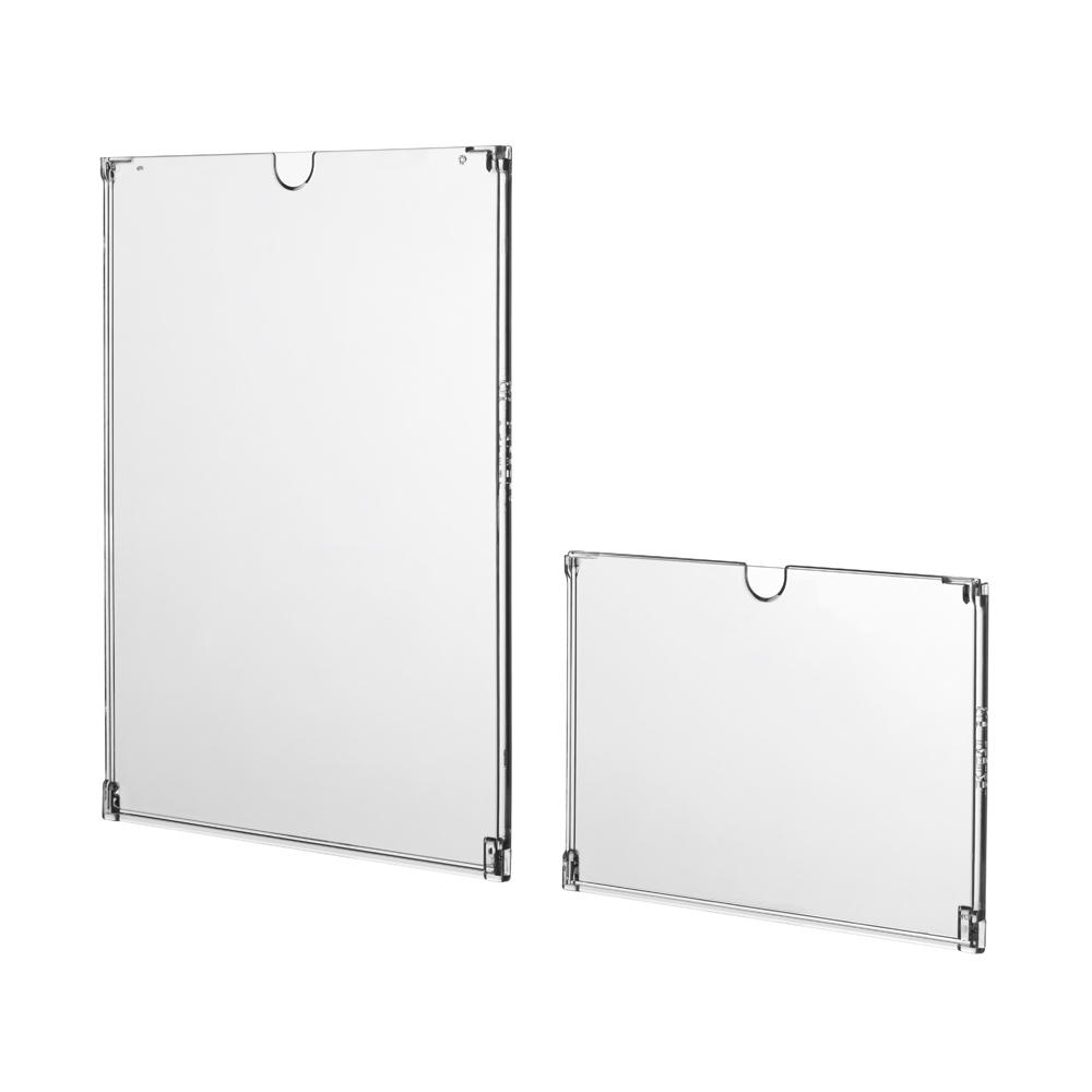 Plakatholder i akryl med hengslet front for enkelt og raskt plakatskifte. For veggmontering. Leveres med dobbeltsidig tape pads for veggmontering. Egnet for enkle ark der det skal være enkelt å skifte ut og oppdatere budskapet..