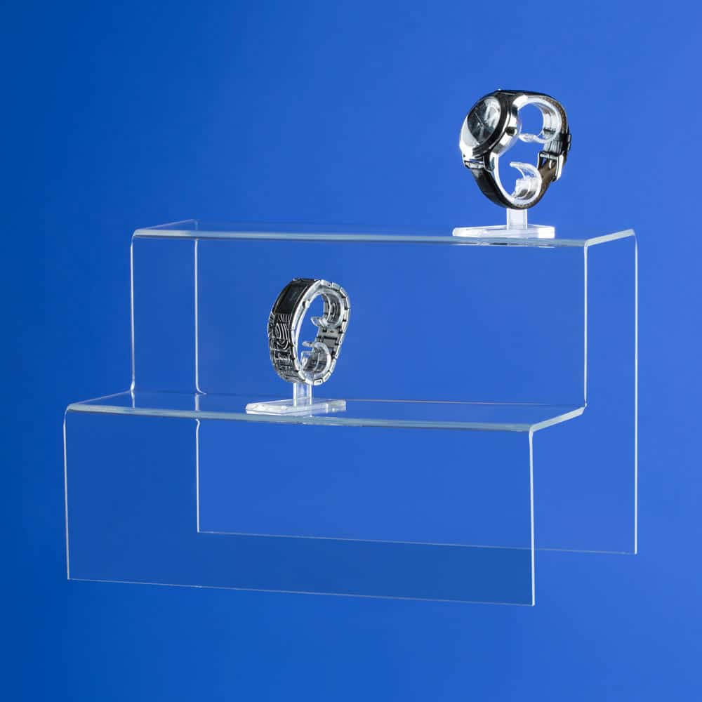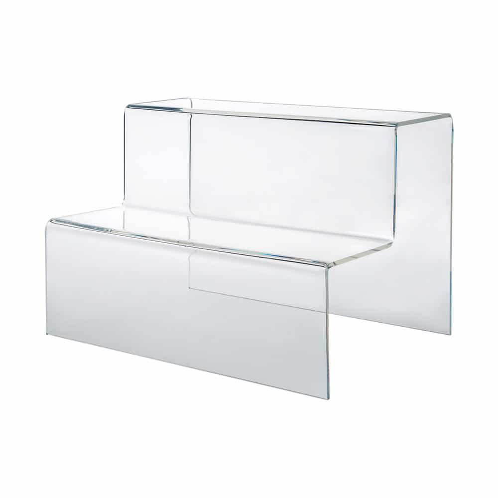 Accessoirer og nips trenger litt hjelp for å bli sett og lagt merke til. Dette stilrene trappedisplayet i kraftig, klar akryl løfter frem smykker og andre småsaker.