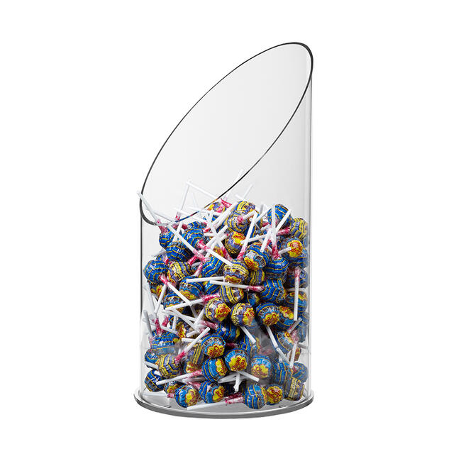 Rørdispenseren har en høy glans og er en skikkelig slager når den står der full av sukkertøy. Plasser den ved kassa eller i resepsjonen som et blikkfang. Åpningen er senket i fronten for å gjøre det enklere å komme til godsakene.