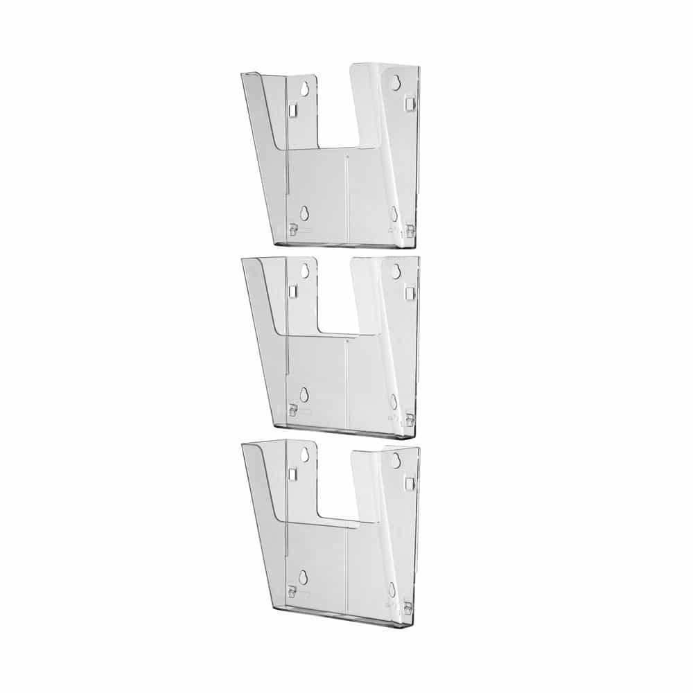 Produktet består av 3 stk brosjyreholdere som kan kobles sammen eller monteres individuelt.