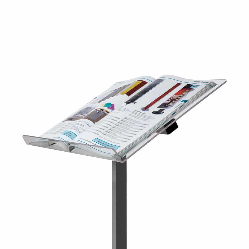 Stativ for katalogpresentasjon, kommer med eller uten ringpermholder.