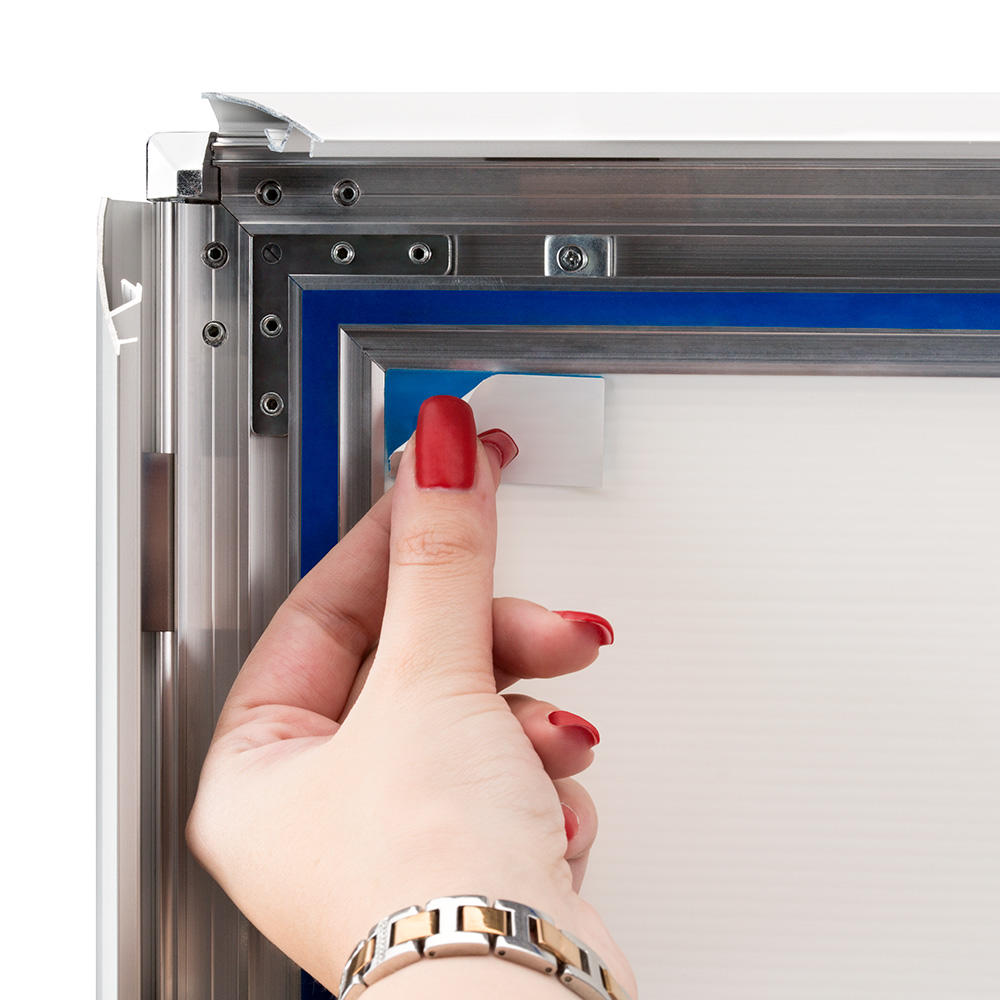 Klikkrammen gjør det enkelt å bytte plakater på begge sider. For å skifte plakat åpnes de fire profilene på rammen, beskyttelsesfolien fjernes, og plakaten erstattes. Deretter lukkes rammen igjen, og plakatbyttet er ferdig. En gummiforsegling rundt bakpanelet forhindrer vann i å trenge inn. Bakpanelene er laget av værbestandig polystyren. Antirefleksfolie laget av UV-stabilisert materiale beskytter plakatene mot falming og gjør innholdet lettere å lese, selv i sollys.