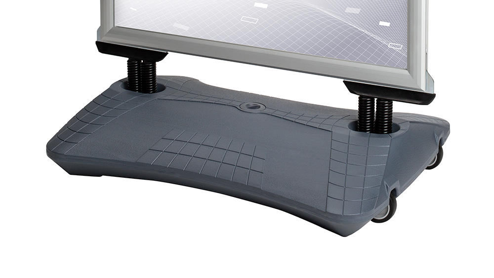 Den høye stabiliteten til gatebukken sikres av den fyllbare basen og spesialtilpasset fjæringsteknologi, som gjør at stativet tåler stormfullt vær, for eksempel i kystområder. Takket være hjulene som er integrert i basen, kan gatebukken enkelt flyttes.