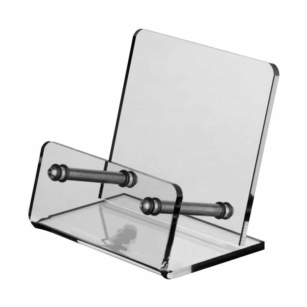 Visittkortholder i 4mm klar akryl og bolter i syrefast stål.